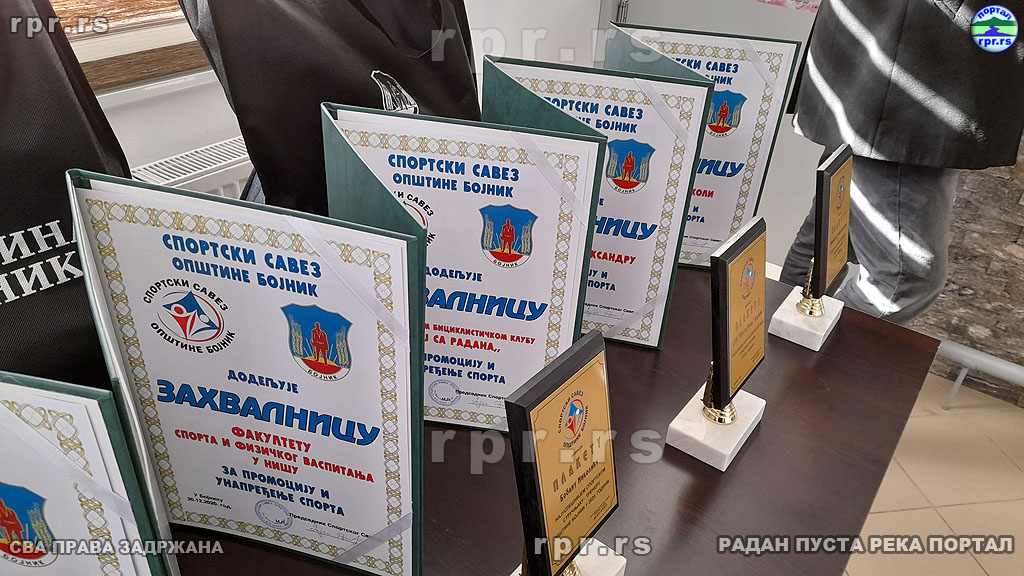Захвалнице за афирмацију спорта и добру сарадњу добили су Факултет спорта и физичког васпитања из Ниша, Клуб кошарке у колицима Naisus из Ниша, а постхумно признање је припало Стојану Радивојевићу за допринос развоју карате спорта у Бојнику. Признања су добиле Установа Дом културе, Спортска хала, планинарски клуб „Змај са Радана“, спортисти и спортски радници Никола Станковић и Александар Јовановић, а за изузетан допринос у промоцији спорта захвалнице су уручене Радан Пуста Река порталу, порталу ЈугСпорт нет и телевизији ТВ4С.
