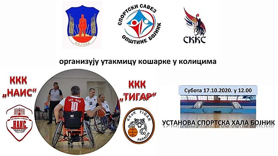 У Бојнику, у Спортској хали, у Суботу, са почетком у 12 часова, одиграће се утакмица кошарке у колицима између екипе KKK „NAIS“ из Ниша и екипе ККК“ТИГАР“ из Параћина.